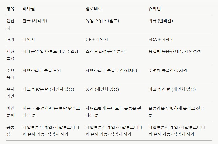 필러 제형과 주입 깊이도 달라질 수 있습니다.
