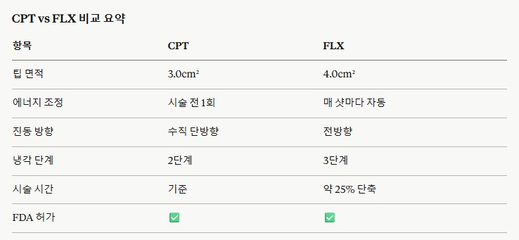 複合的な結果として、FLXは前世代と比較して施術時間が