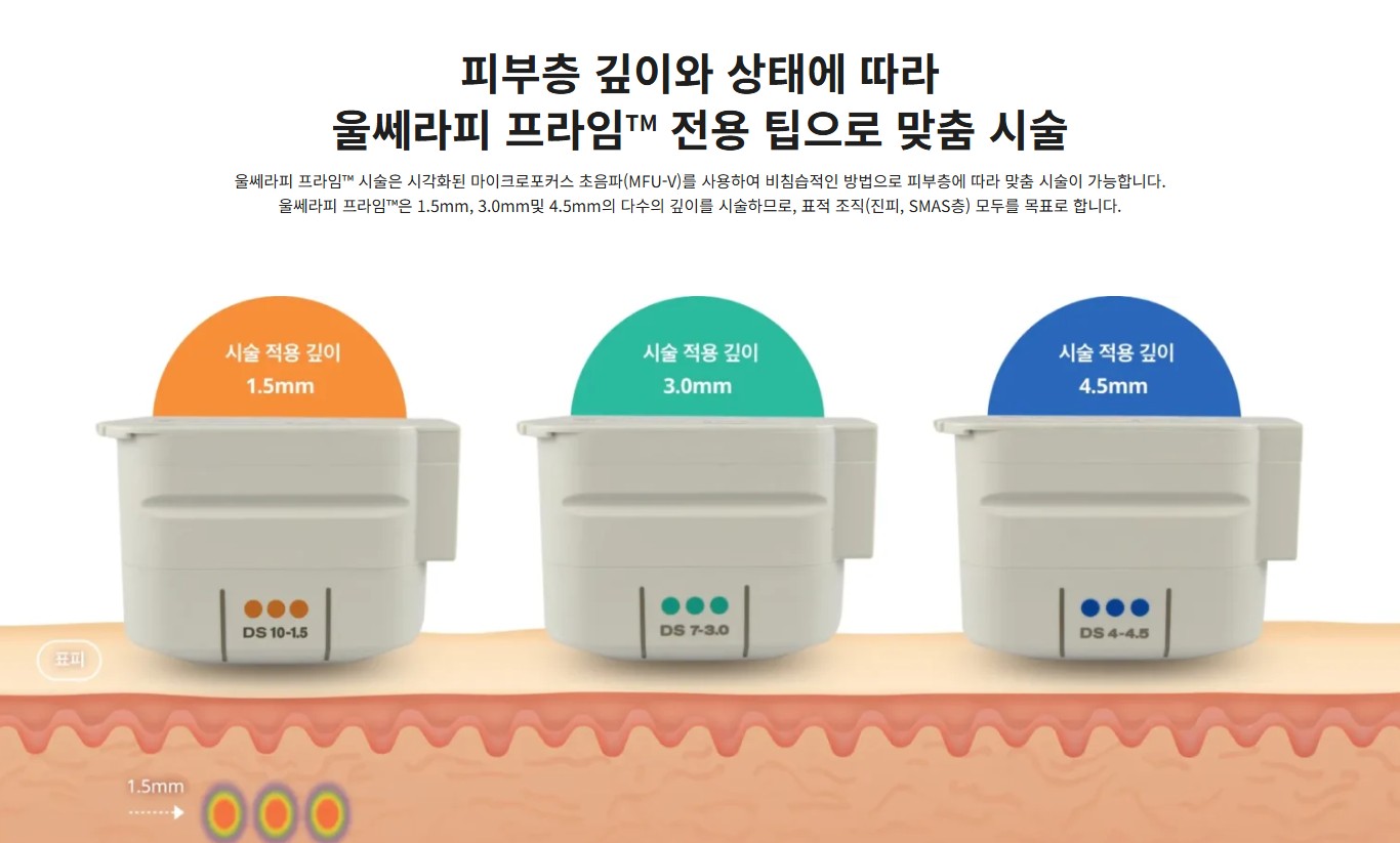 Ultherapy 根据能量到达的深度使用 3 种换能器探头。