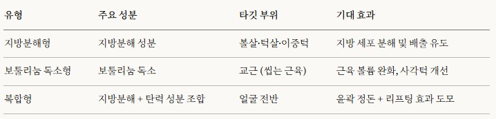 脂肪分解型:注入面颊肉、下颌肉、双下巴等脂肪堆积部位,分解脂肪细胞并引导其排出。
