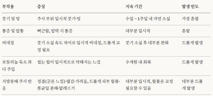 注射部位可能会出现暂时性的肿胀和淤青。